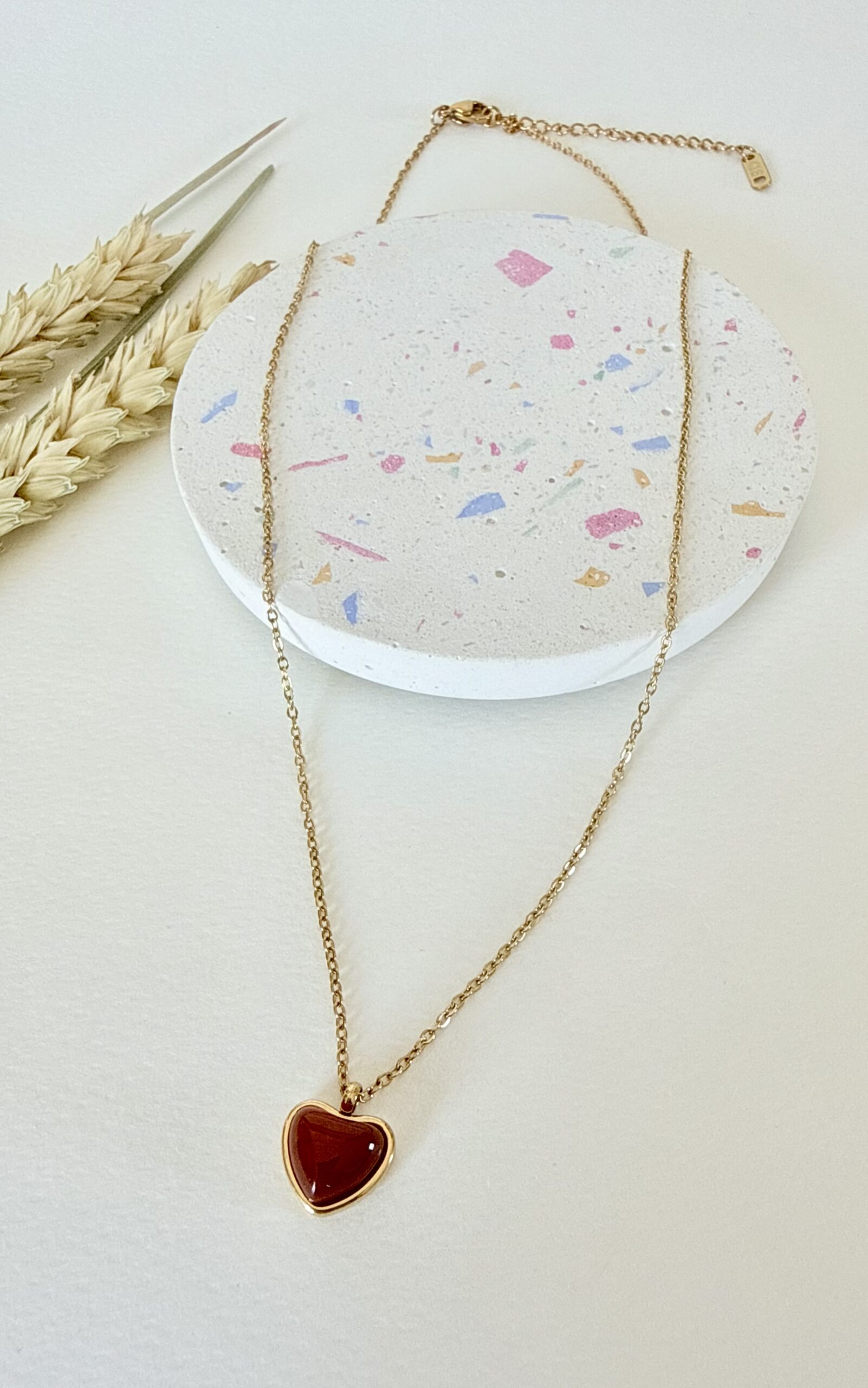 Το Cinnabar Heart είναι το κολιέ που θα λατρέψετε να φοράτε κάθε μέρα! Μια υπέροχη, στιλπνή καρδιά σε μια βαθιά terracotta απόχρωση, ‘αγκαλιασμένη’ από ένα διακριτικό χρυσό περίγραμμα. Είναι το κόσμημα που δίνει συναίσθημα και χρώμα σε κάθε σας εμφάνιση.