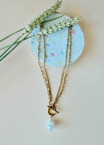 - Πέρλα: Μια κομψή, λευκή πέρλα που κρέμεται στο τελείωμα, χαρίζοντας μία διαχρονική πινελιά.
