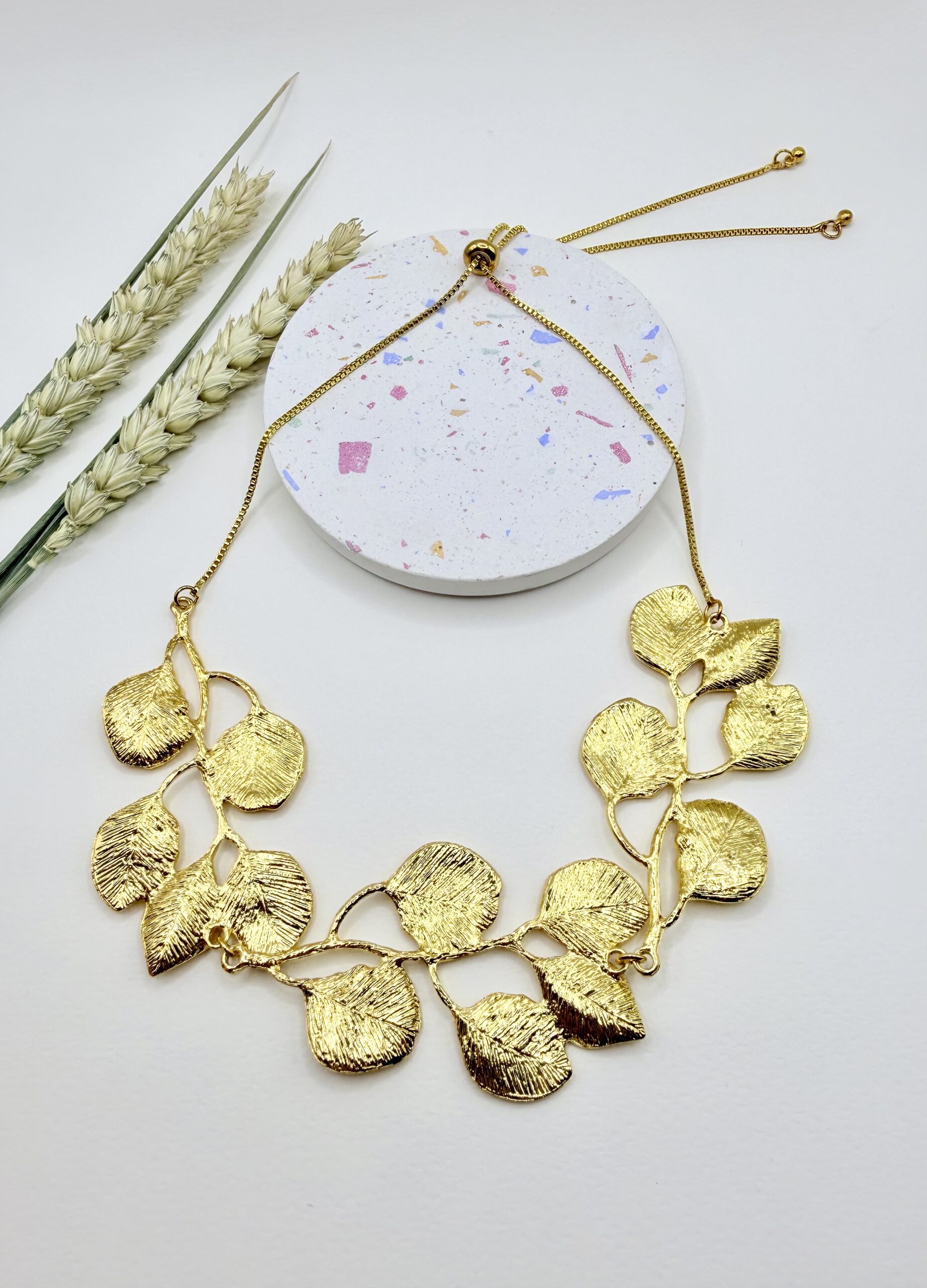 Φορέστε τη δύναμη της φύσης! Το κολιέ Gaia με τα ανάγλυφα χρυσά φύλλα είναι η δική μας πρόταση για εμφανίσεις που κόβουν την ανάσα. Απόλυτα ρυθμιζόμενο, απόλυτα μοναδικό, ακριβώς όπως εσείς.