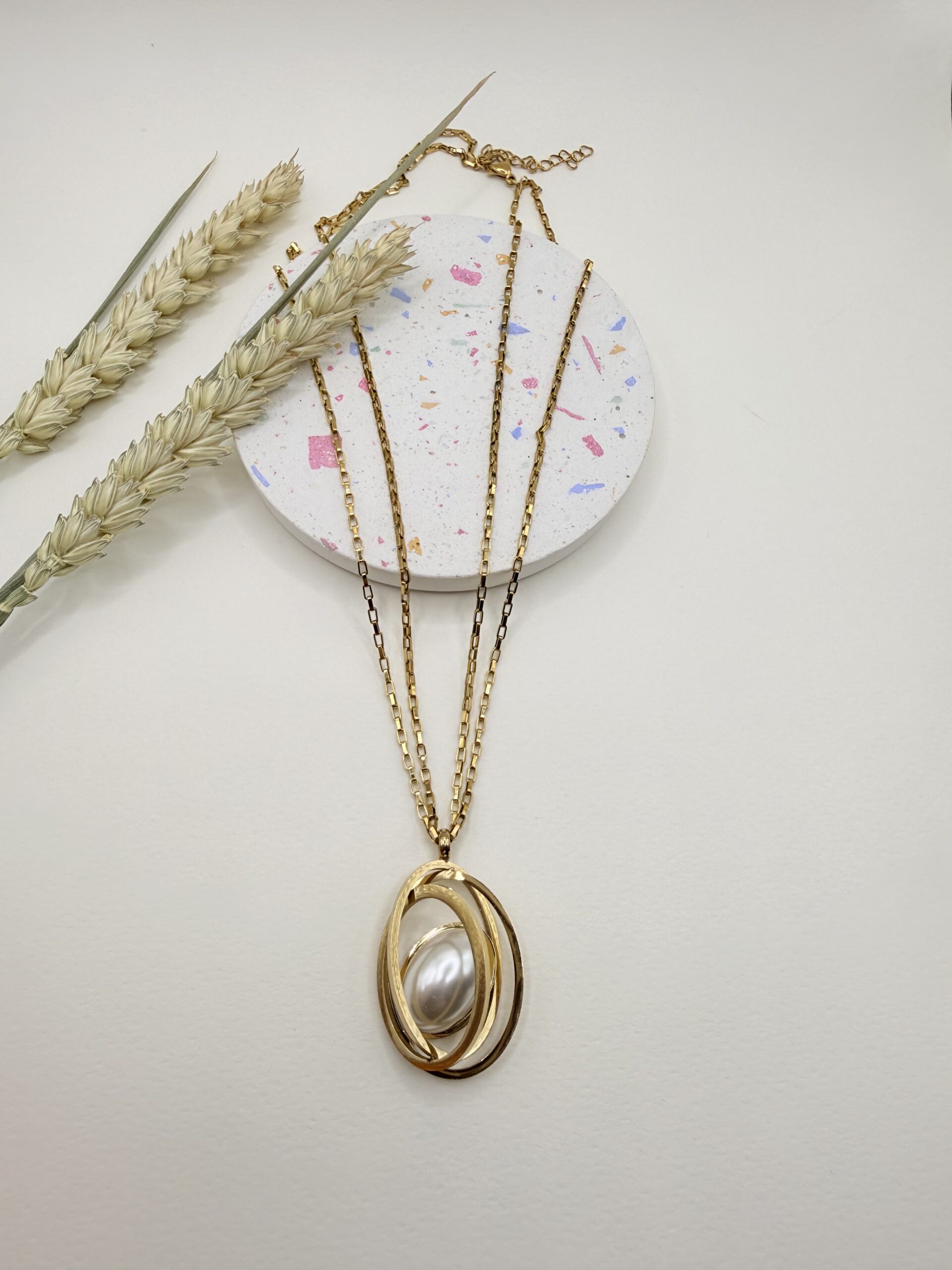 Το Hera necklace είναι η απόλυτη δήλωση ισχύος και κομψότητας! Αυτό το κολιέ είναι ένα μικρό έργο τέχνης. Οι χρυσοί τροχοί που περιδινούνται γύρω από την εντυπωσιακή πέρλα συμβολίζουν την κίνηση και την αρμονία. Είναι το κόσμημα που θα φοράτε όταν θέλετε να νιώθετε επιβλητικές, σίγουρες και απόλυτα chic. Είναι η ‘βασίλισσα’ της συλλογής μας!