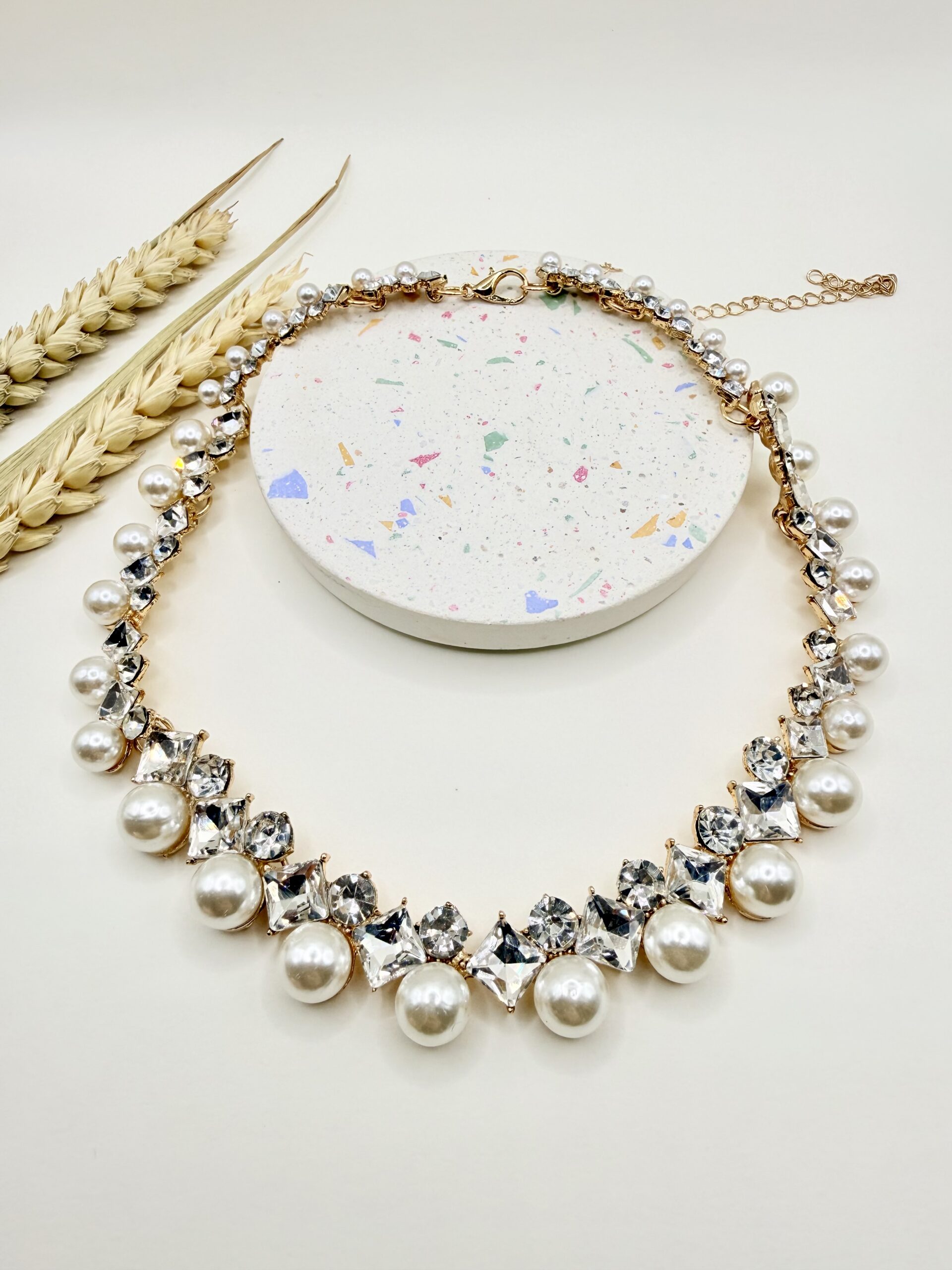 Η επιτομή της πολυτέλειας στον λαιμό σας. Ένας χορός από πέρλες και κρύσταλλα πάνω σε μια χρυσή “ροή” που θα μαγνητίσει όλα τα βλέμματα. Γιατί μερικές φορές, το “περισσότερο” είναι ακριβώς αυτό που χρειάζεστε. 🤍💎