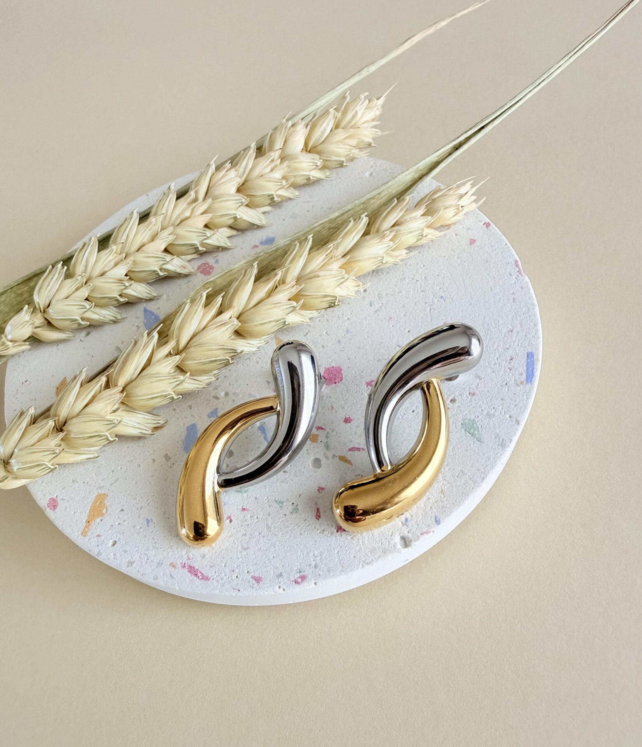 The Abstract Link Hoops: Αυτή η εκδοχή του διμεταλλικού σχεδίου είναι εμπνευσμένη από τη μοντέρνα γλυπτική. Οι δύο ξεχωριστές, ρευστής μορφής καμπύλες, η μία χρυσή και η άλλη ασημένια, συνδέονται οπτικά δημιουργώντας μια αφηρημένη αλυσίδα. Είναι ένα κόσμημα που προσθέτει υφή και κίνηση στο πρόσωπο, ιδανικό για να εκφράσετε τον Art Chic χαρακτήρα σας.