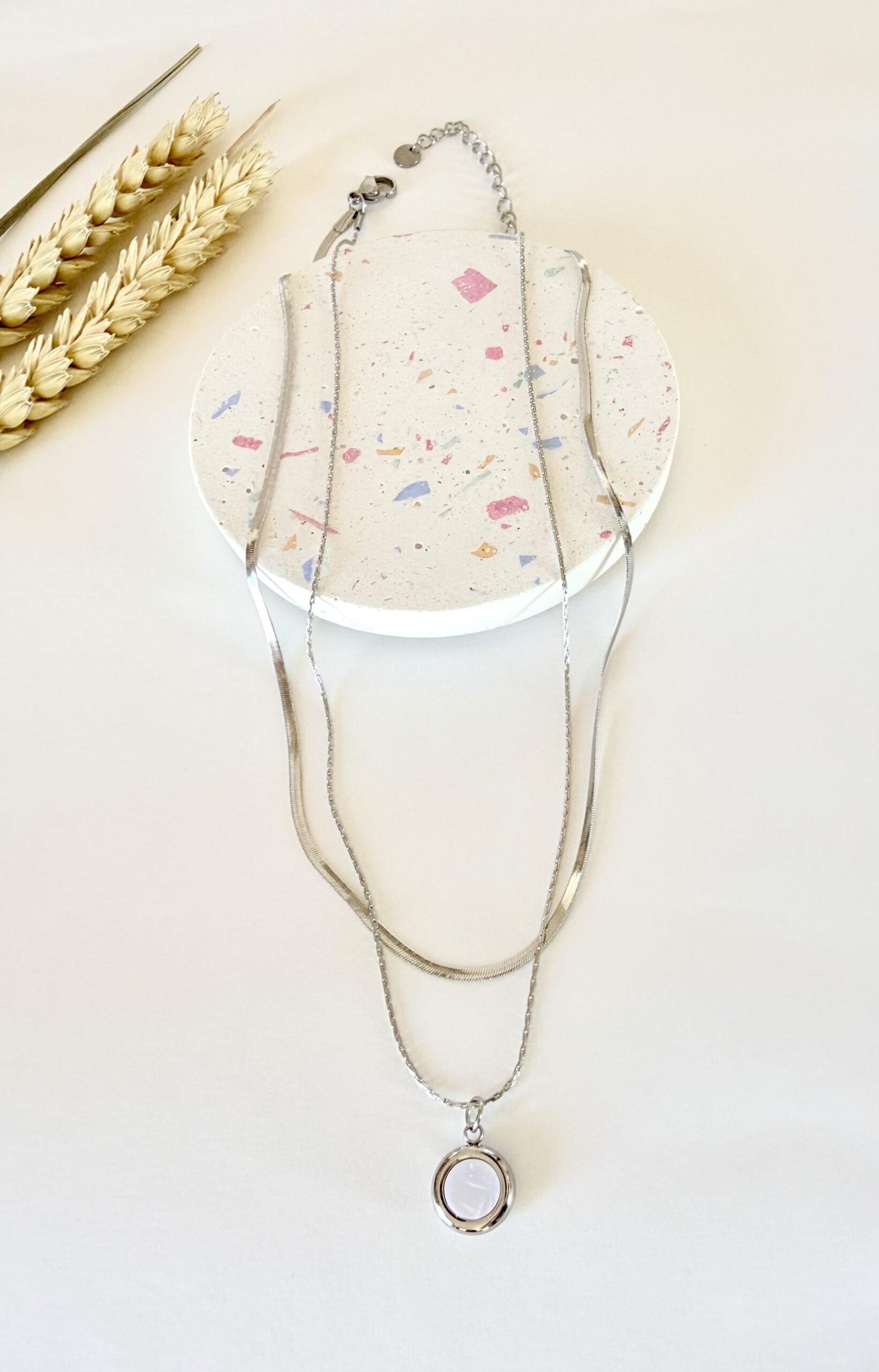 Σχεδιασμός: Διπλό κολιέ σε ασημί τόνους με ενσωματωμένο layering.