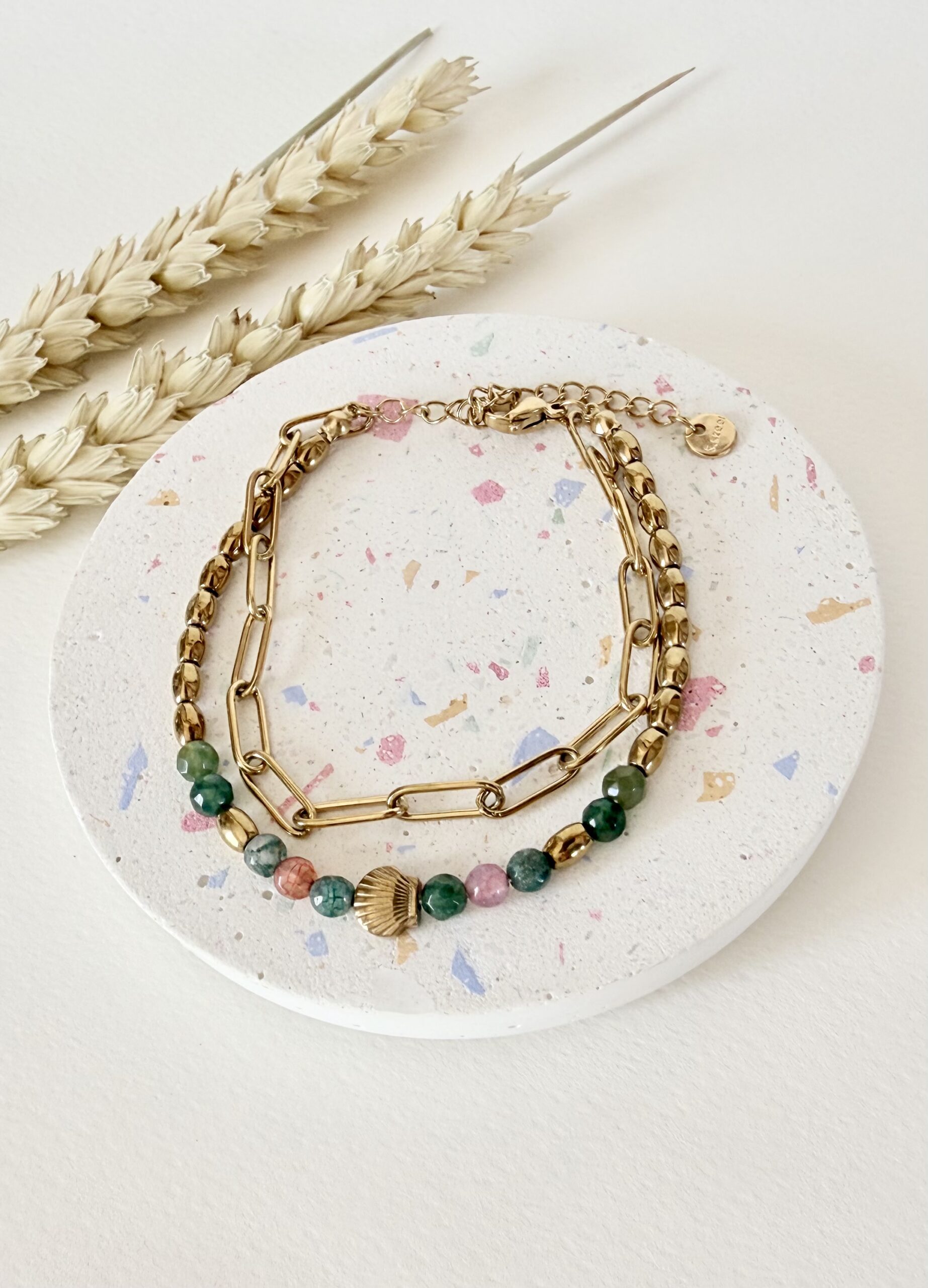 Το Siren Bracelet είναι το κάλεσμα της γοητείας! Ένα έτοιμο layered κομμάτι που συνδυάζει τη λάμψη του χρυσού με τις μεθυστικές αποχρώσεις των πράσινων πετρών. Το κεντρικό του κοχύλι δεν είναι απλά ένα στοιχείο, είναι η υπόσχεση για αιώνιο στυλ και θηλυκότητα.
