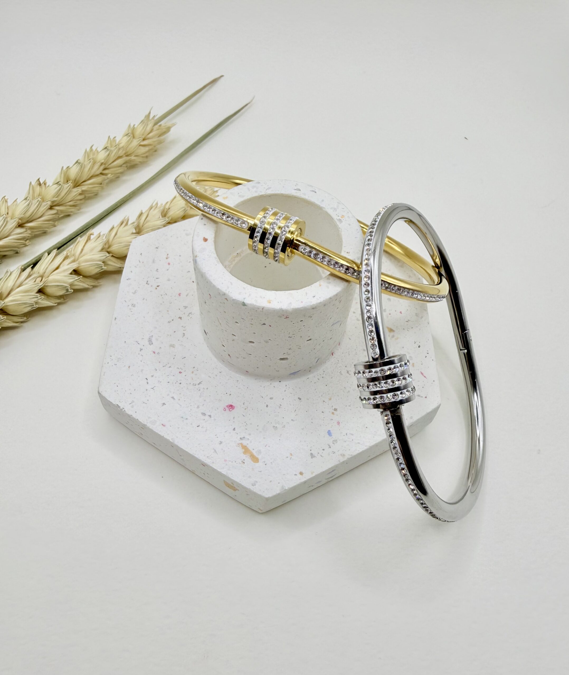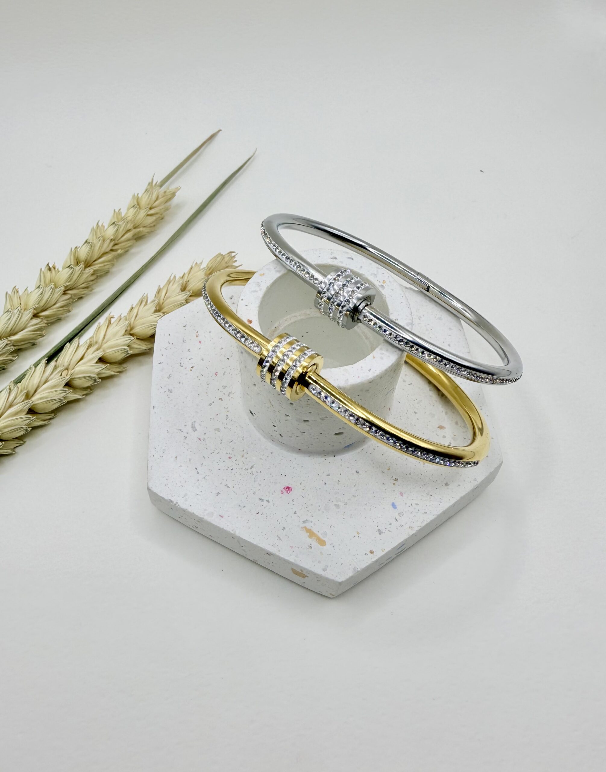 Σχεδιασμός: Σταθερό βραχιόλι τύπου χειροπέδα με πολυτελές ανοιγόμενο κλείσιμο.